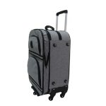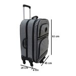 Mala de viagem com carrinho média, ideal para viagens de média duração. Mala de viagem com carrinho média, confeccionado em nylon maquinetado (840 ou méxico), com as seguintes características: Compartimento principal forrada com cetim e fechamento em zíper nº 8 com dois cursores, com acabamento externo em arame coberto com vivo; Dois bolsos frontais forrados com cetim e fechamento em zíper nº 6 com dois cursores, com acabamento externo em vivo; Na parte interna da tampa possui um bolso de cetim com fechamento em zíper nº 6 e um cursor;Laterais rígidas com uma chapa de metal e outra de plástico; Alça de mão na forma horizontal e vertical; Possui dois elásticos internos com fecho aranha para prender os utensílios; Carrinho de alumínio 360º com cinco rodas de silicone, puxador regulável e um apoiador (extensor) que pode ser puxado com a função de manter a mala em pé quando ela estiver cheia;Possui uma parte expansiva, com a qual pode-se aumentar o compartimento principal para frente, caso precise; Na posição horizontal possui quatro pezinhos para apoiar no chão. Compartimentos (altura x largura x profundidade): Principal (não expandida): 63 x 45 x 20 cm (aproximadamente); Principal (expandida): 63 x 45 x 24 cm (aproximadamente); Frontal de cima: 20 x 31 x 2 cm (aproximadamente).; Frontal de baixo: 25,5 x 34 x 2 cm (aproximadamente).