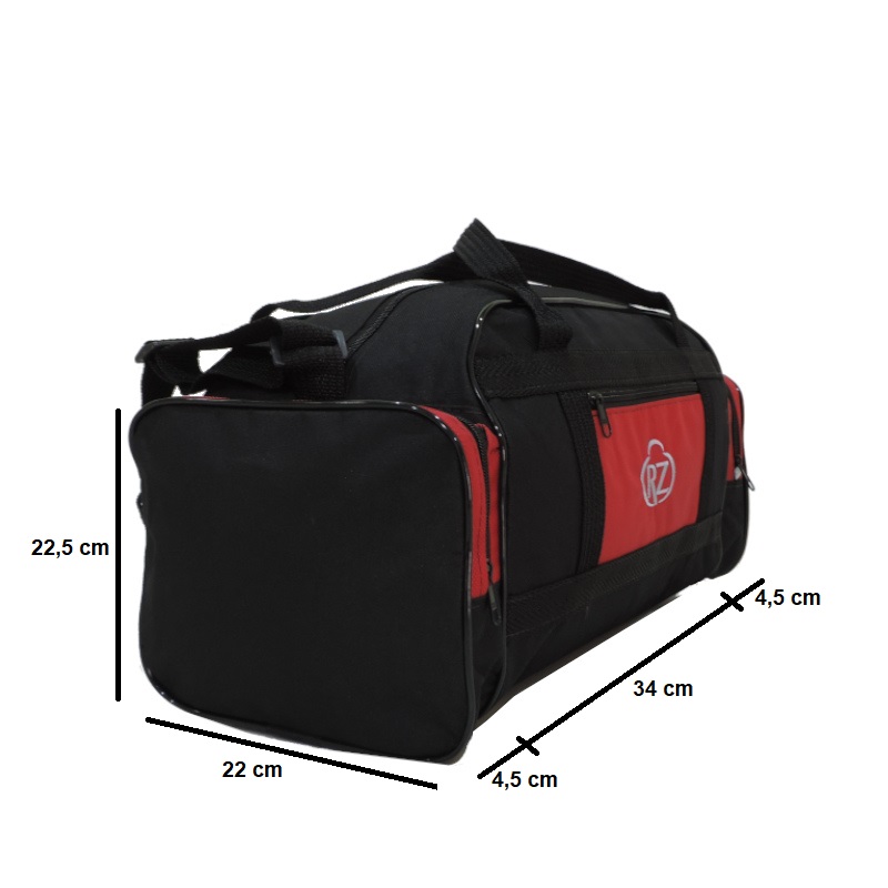 Bolsa de viagem ideal para transportar sapatos, roupas, produtos de higiene pessoal, equipamentos esportivos, armazenamento de ferramentas, equipamentos de EPI entre outros. Bolsa de viagem confeccionada em nylon 600 (poliéster 600 / lona 600 / duratran), com as seguintes características: Compartimento principal com fechamento em zíper nº 6 e dois cursores, com acabamento externo em vivo; Dois compartimentos laterais com fechamento em zíper nº 6 e um cursor, com acabamento externo em vivo; Bolso frontal sobreposto com fechamento em zíper nº 6 e um cursor; Duas alças de mão em cadarço 2,5 cm de largura e 42 cm de comprimento; Alça de ombro fixa e regulável com cadarço de 3 cm de largura e 120 cm de comprimento. Compartimentos (altura x largura x profundidade): Principal: 22,5 x 34 x 22 cm (aproximadamente); Laterais: 17 x 4,5 x 22 cm (aproximadamente); Frontal sobreposto: 10,5 x 18 x 0 cm (aproximadamente). Dimensão total do produto: Altura: 22,5 cm (aproximadamente); Largura: 44 cm (aproximadamente); Profundidade: 22 cm (aproximadamente).