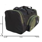 Bolsa de viagem ideal para transportar sapatos, roupas, produtos de higiene pessoal, equipamentos esportivos, armazenamento de ferramentas, equipamentos de EPI entre outros. Bolsa de viagem confeccionada em nylon 600 (poliéster 600 / lona 600 / duratran) com detalhes em nylon 840 (lona 840), com as seguintes características: Compartimento principal com fechamento em forma de “U” com zíper nº 6 e dois cursores, com acabamento externo em vivo; Dois compartimentos laterais com fechamento em zíper nº 6 e um cursor, com acabamento externo em vivo; Bolso frontal com fechamento em zíper nº 6 e um cursor, com acabamento externo em vivo, sendo que somente para enfeitar, na sua frente vai uma cordinha (rabo de rato) trançada e quatro ilhoses; Duas alças de mão em cadarço 3 cm de largura e 50 cm de comprimento; Alça de ombro fixa e regulável com cadarço de 4 cm de largura e 130 cm de comprimento. Cores sortidas! Compartimentos (altura x largura x profundidade): Principal: 31 x 43 x 27 cm (aproximadamente); Laterais: 31 x 5,5 x 27 cm (aproximadamente); Frontal: 18,5 x 33 x 5,5 cm (aproximadamente).