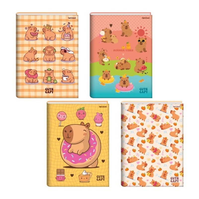 Caderno Brochura 1/4 Capivara; Capa Dura; 80 Folhas; Miolo Padrão; 4 Modelos De Capa; Medida: 140 mm x 200 mm.