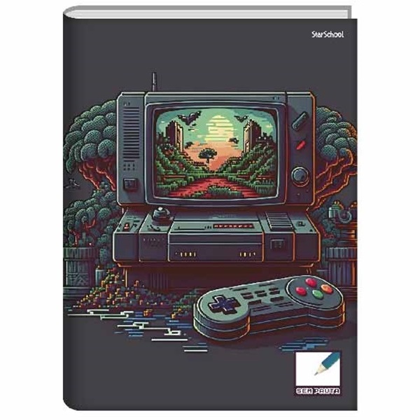 CADERNO BROCHURA UNIVERSITÁRIO CAPA DURA COSTURADO MANDALORIAN, 80 FOLHAS, 4 MODELOS DE CAPA. MEDIDA: 200 MM x 275 MM.
