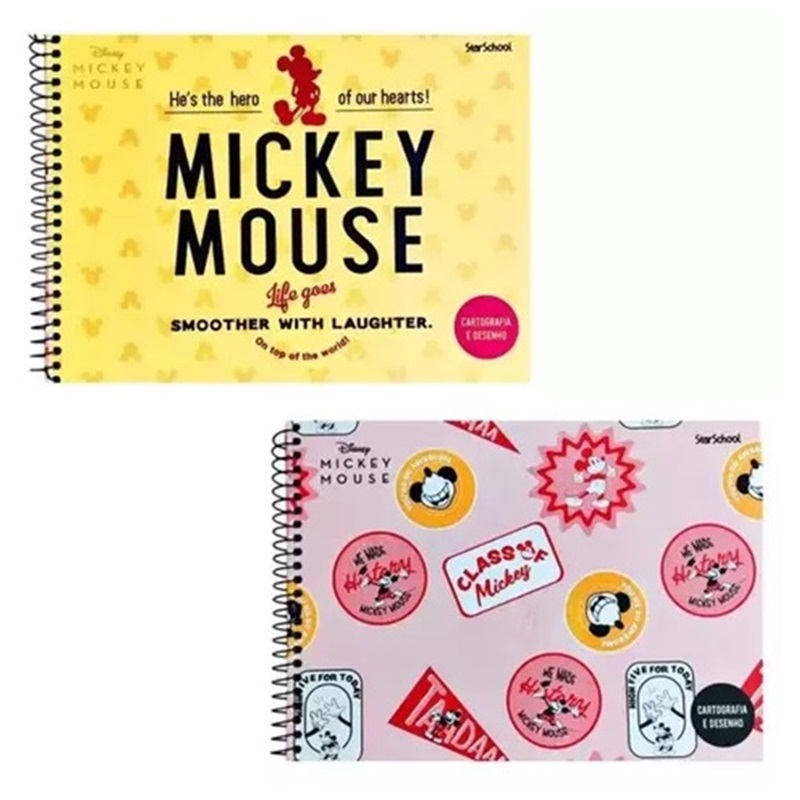 Caderno Cartografia Espiral Capa Dura Mickey 80 Folhas