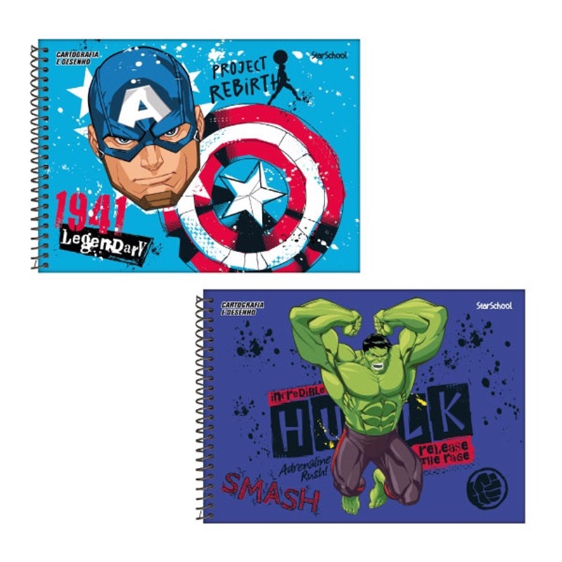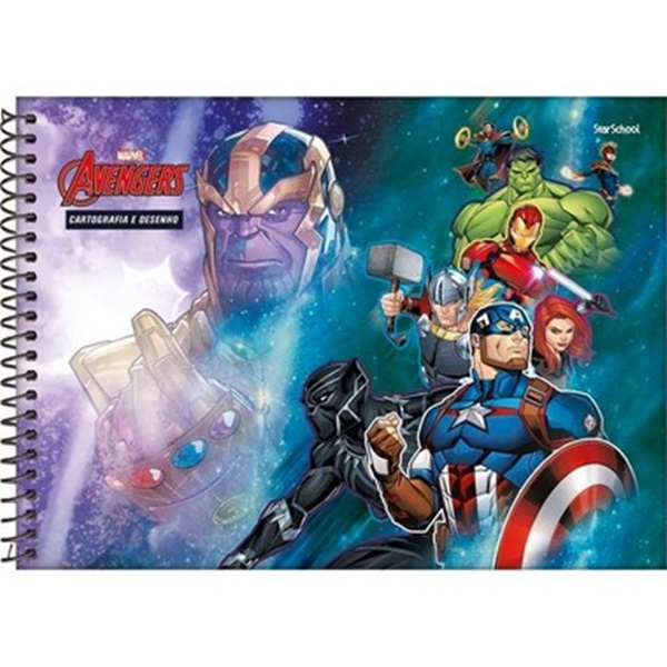Caderno Cartografia Espiral Capa Dura Avengers 80 Folhas