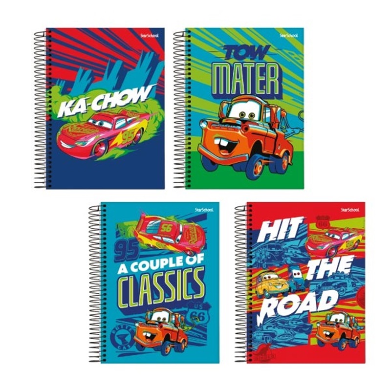 CADERNO ESPIRAL UNIVERSITÁRIO CAPA DURA CARROS, 1 MATÉRIA, 80 FOLHAS, LAMINAÇÃO BRILHO, ESPIRAL REVESTIDO, MIOLO PADRÃO, 4 MODELOS DE CAPA. MEDIDA: 200 mm x 275 mm.