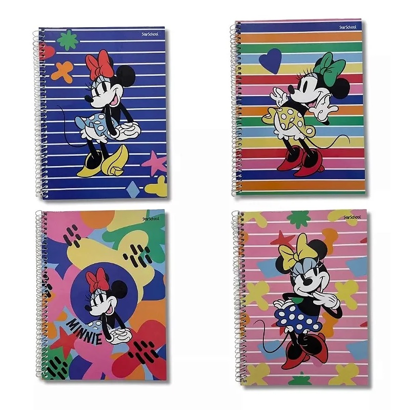 CADERNO ESPIRAL UNIVERSITÁRIO CAPA DURA MINNIE, 20 MATÉRIAS, 320 FOLHAS, LAMINAÇÃO BRILHO, ESPIRAL REVESTIDO, MIOLO PADRÃO, 4 MODELOS DE CAPA. MEDIDAS: 200 mm x 275 mm.