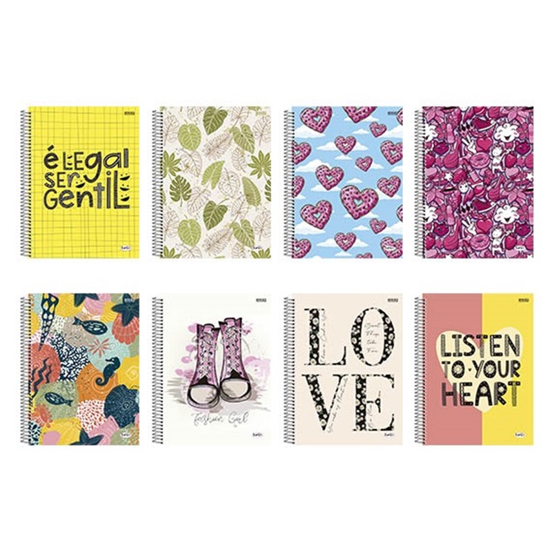 Caderno universitário 15 matérias 240 folhas, 20 cm x 27,5 cm, com laminação em brilho. Cumpre o que promete, que é encantar o público com suas diversas opções de capas, estilos e cores. Vamos concordar que isso é BomD+.