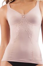 DULOREN – COLEÇÃO SENSUAL REDUTORA – REF.: 112712. Camisete em cetinete de alta compressão e super power. Sem aro, não possui bojo estruturado, mas busto em tecido duplo de anatomia moldada com costura reforçada. Detalhe renda frontal. Reforço frontal redutor de abdômen e barriga, lados com costuras cinturadas, alças largas fixas e reguláveis. Veste Plus Size. TAMANHOS: 42, 44, 46 e 48. CORES: BEGE, BLUSH e PRETO. COMPOSIÇÃO: 85% Poliamida, 15% Elastano.