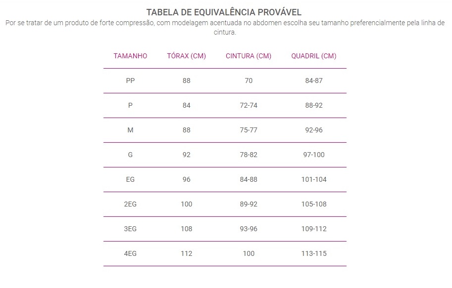 Tamanho | G – GRANDE, GG – EG/GG/XG(G2), M – MÉDIO, P – PEQUENO |