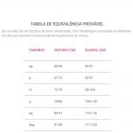 | Tamanho | G – GRANDE, M – MÉDIO, P – PEQUENO |