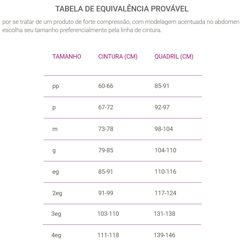 Tamanho | G – GRANDE, GG – EG/GG/XG(G2), M – MÉDIO, P – PEQUENO, P2 – EP/PP/XP |