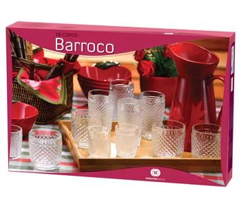 Clássico e versátil. Para cada ocasião, um tipo de copo que combina com o momento especial, com o brilho e a versatilidade da linha Barroco e seu design bico de jaca. Um grande presente, com copos que vão bem à mesa e nas reuniões com os amigos.Composição do conjunto: 6 COPOS PARA ÁGUA; 6 COPOS ON THE ROCKS; 6 COPOS PARA APERITIVO. Medidas da embalagem: 29 cm x 24 cm x 15 cm.