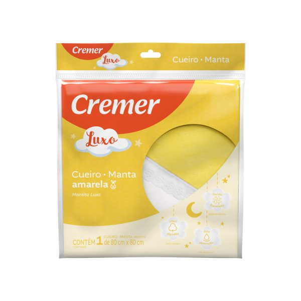 Cueiro manta branco/amarelo Cremer luxo. Confeccionado em tecido 100% algodão macio e suave. Ideal para apoiar o bebê no pós banho, protegê-lo de cobertores sintéticos e auxiliar no carrinho durante o passeio, o cueiro é um item indispensável no enxoval. Tecido flanelado; 100% puro algodão; Alta absorção; Contém 1 unidade de 80cm x 80cm.