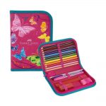 Faber-Castell – Soluções completas para o uso na escola. 18.2208 – Estojo Escolar Borboleta: 12 EcoLápis de Cor + 1 EcoLápis Grafite + 2 Canetas Esferográficas (Azul e Vermelha) + 1 Apontador com Depósito + 1 Borracha e 1 Régua.