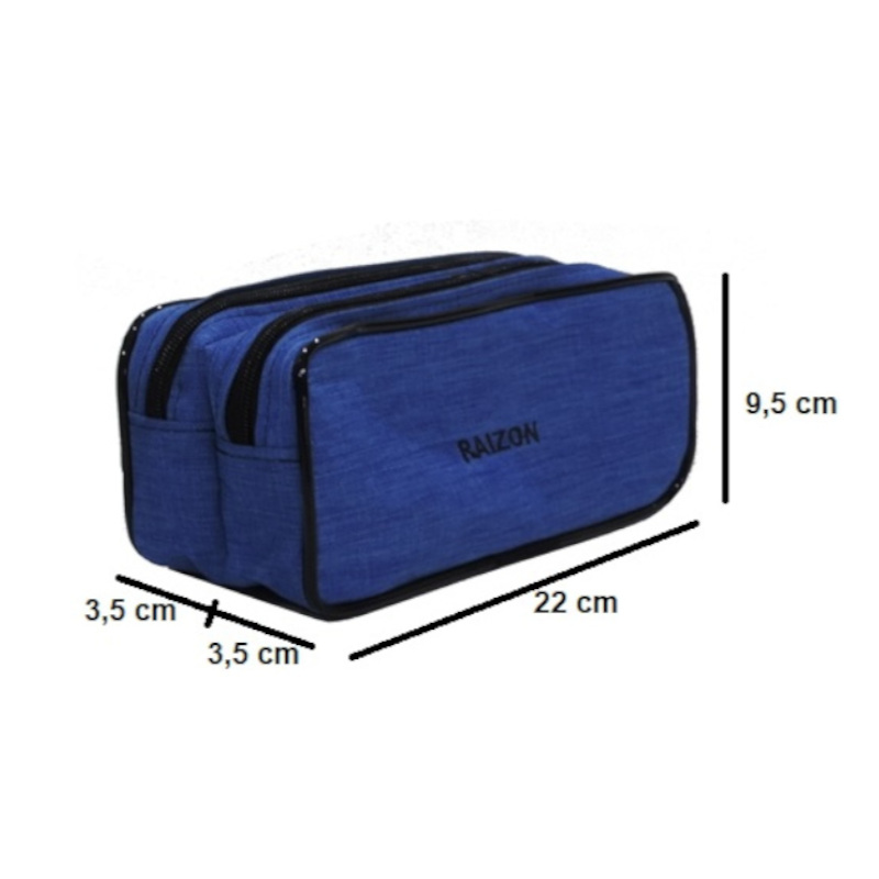 Estojo escolar, porta lápis usado para transportar objetos como lápis, canetas, réguas, borrachas, objetos de usos pessoais entre outros. Porta lápis escolar duplo confeccionado em lona 600 (nylon 600, poliéster 600, duratran) com as seguintes características: Dois compartimentos, ambos com fechamento em zíper nº 6 e um cursor com acabamento externo em vivo; Uma alça de mão em cadarço de 2,5 cm de largura e 17 cm de comprimento; Cores sortidas! Dimensões do produto por compartimento: Altura: 9,5 cm (aproximadamente); Largura: 22 cm (aproximadamente); Profundidade: 3,5 cm (aproximadamente). Dimensão total do produto:Altura: 9,5 cm (aproximadamente)Largura: 22 cm (aproximadamente)Profundidade: 7 cm (aproximadamente)