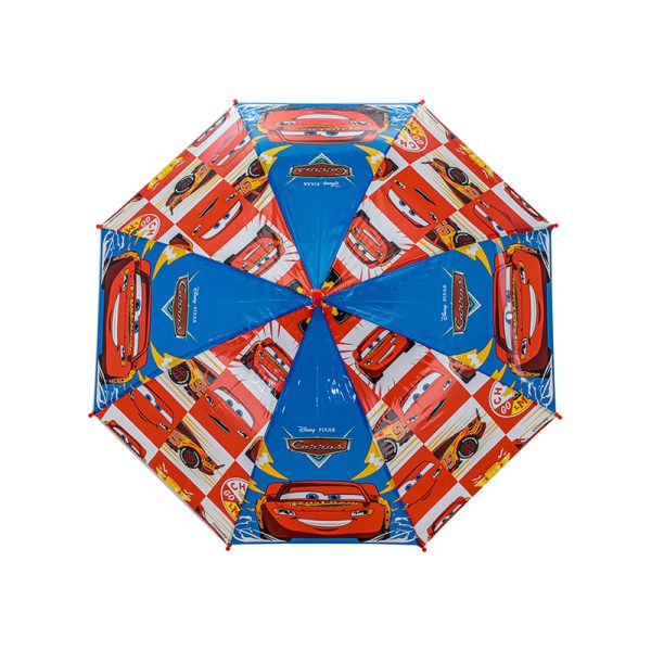 Guarda-chuva longo infantil automático Cars. Raio: 48 cm. Estrutura: metal. Abertura: auto. Seções: uma. Varetas: oito. Tecido: poliéster.
