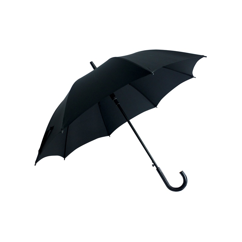 Guarda-chuva longo automático preto. Raio: 60 cm. Estrutura: metal. Abertura: auto. Seções: uma. Varetas: oito. Tecido: poliéster.
