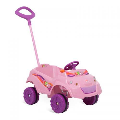 Um carro de passeio seguro, prático e super divertido para o bebê. • Cinto de segurança; • Freio de segurança; • Haste tubular em aço, removível com trava de segurança; • Alça da haste com maior empunhadura; • Volante com buzina; • Rodas com anéis antiderrapantes: deslocamento suave e sem ruído; • Rodas dianteiras com giro de 360°; • Idade: + 12 meses; • Cores: azul, rosa e vermelho. Dimensões: (C,L,A) 103,0 X 51,0 X 107,0 cm.