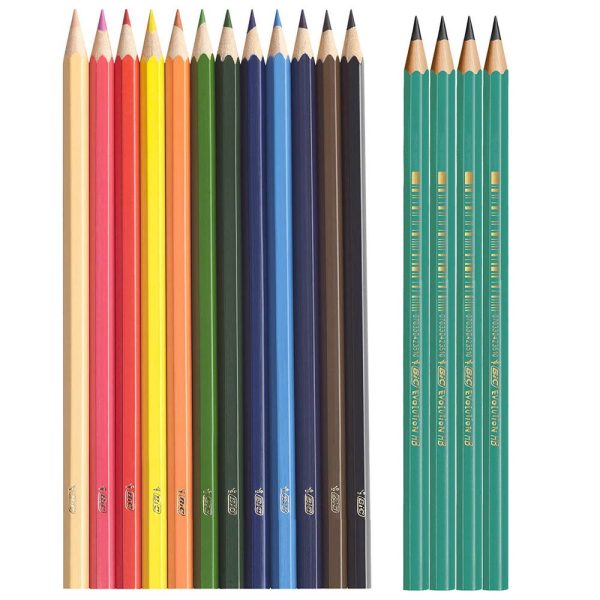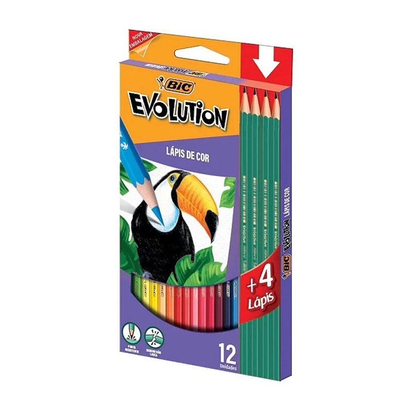 O lápis de cor BIC Evolution vem no estojo com 12 cores vivas e intensas + 4 Lápis Preto Evolution grátis, por isso são ideiais na sua lista de material escolar.Possui ponta super resistente. Muito seguro para crianças porque não lasca, devido ao seu exclusivo processo de fabricação que não usa madeira e sim uma resina sintética, estes lápis especiais são fruto de anos de investigação até que este processo único de produção, quadri-extrusão, fosse aperfeiçoado, permitindo a produção numa única operação. Seu corpo sextavado não deixa que o lápis role pela mesa. Sua mina é mácia e fácil de apontar. Suas cores são vivas e intensas com ótimo poder de cobertura. Ponta ultra resistente; Corpo sextavado; Mina macia e fácil de apontar; Cores vivas e ótimo poder de cobertura; Produto atóxico: seguro para crianças. Cor: 12 cores + 4 lapis preto. Indicações: Para desenhar, colorir ou pintar.
