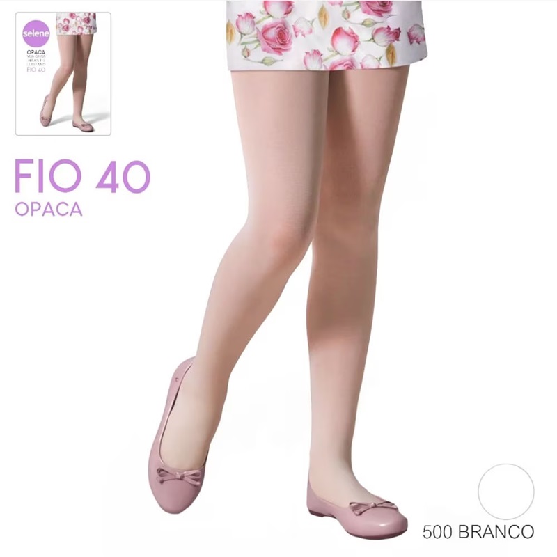 MEIA-CALÇA INFANTIL OPACA ELASTANO FIO 40 SELENE. CORES: BRANCO, MARFIM, PRETO, ROSA. TAMANHO P: PESO(KG) 15 A 25 E ALTURA(M) 0,90 A 1,10; TAMANHO M: PESO(KG) 21 A 35 E ALTURA(M) 1,10 A 1,30; TAMANHO G: PESO(KG) 27 A 40 E ALTURA(M) 1,30 A 1,40; TAMANHO EG: PESO(KG) 38 A 53 E ALTURA(M) 1,40 A 1,60; COMPOSIÇÃO: 91% POLIAMIDA; 9% ELASTANO.