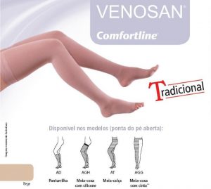 Curta Ponta do Pé Aberto. Linha tradicional de meias compressivas medicinais. A combinação perfeita entre conforto e naturalidade, proporcionando agradável sensação ao vestir. Meias tradicionais de elasto-compressão produzidas com tecnologia sofisticada, a partir de elastano de última geração com duplo recobrimento. A Comfortline oferece excelente custo-benefício, garantindo conforto e durabilidade também em climas tropicais. INDICAÇÕES: 20 – 30 mmHg – Média compressão. – Sensação de peso e fadiga nas pernas; – Varizes durante a gravidez; – Varizes com tendência para edema; – Após escleroterapia de pequenas veias.COMPOSIÇÃO: 80-86% POLIAMIDA / NYLON – 14-20% ELASTANO / SPANDEX