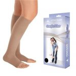 Panturrilha Curta Ponta do Pé Aberto. Linha tradicional de meias compressivas medicinais. A combinação perfeita entre conforto e naturalidade, proporcionando agradável sensação ao vestir. Meias tradicionais de elasto-compressão produzidas com tecnologia sofisticada, a partir de elastano de última geração com duplo recobrimento. A Comfortline oferece excelente custo-benefício, garantindo conforto e durabilidade também em climas tropicais. INDICAÇÕES: 20 – 30 mmHg – Média compressão. – Sensação de peso e fadiga nas pernas; – Varizes durante a gravidez; – Varizes com tendência para edema; – Após escleroterapia de pequenas veias; COMPOSIÇÃO: 80-86% POLIAMIDA / NYLON – 14-20% ELASTANO / SPANDEX