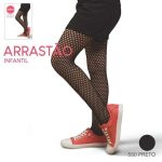 Meia-calça arrastão infantil Selene. Cor: PRETO. Tamanhos: P, M. G, EG. TAMANHO P: ALTURA (m) 0,65 A 1,20, PESO (Kg) 10 A 28; TAMANHO M: ALTURA (m) 0,98 A 1,50, PESO (Kg) 18 A 40; TAMANHO G: ALTURA (m) 1,18 A 1,60, PESO (Kg) 30 A 52; TAMANHO EG: ALTURA (m) 1,30 A 1,66, PESO (Kg) 36 A 60.Composição: 95% PPOLIAMIDA, 5% ELASTANO.