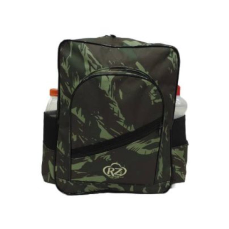 Mochila de costas própria para escola, viagens, trabalho, academia, motociclista e outros; ideal para portar ferramentas, roupas, material escolar, EPI, acessório para trabalho e para o dia a dia.Mochila de costas confeccionada em nylon camuflado que possui as seguintes características: Um compartimento principal com fechamento em zíper nº 6 e dois cursores e com acabamento externo em vivo. Todo ele é revestido internamente em nylon resinado para melhorar a aparência e tornar o produto mais resistente; Dois bolsos frontais: um maior e outro sobreposto a este, ambos com fechamento em zíper nº 6 e um cursor e acabamento externo em vivo; Dois bolsos laterais próprios para garrafa de água, suco etc; Uma alça de mão medindo 23 cm de comprimento e 2,5 cm de largura; Duas alças de ombro almofadadas fixas e reguláveis. Compartimentos: (Altura x Largura x Profundidade): Principal: 38 x 30 x 13 cm (aproximadamente); Frontal: 27 × 21,5 x 4 cm (aproximadamente); Sobreposto: 13 x 21,5 x 0 cm (aproximadamente); Laterais: 17 x 11 x 4 cm (aproximadamente).