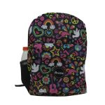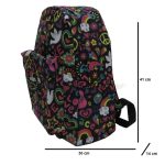 Mochila de costas própria para escola, viagens, trabalho, academia, motociclista e outros; ideal para portar ferramentas, roupas, material escolar, EPI, acessório para trabalho e para o dia a dia. Mochila de costas confeccionada em nylon 600 (lona 600/duratran) e possui as seguintes características: Um compartimento principal, com fechamento em zíper nº 6 e dois cursores; Um bolso frontal com fechamento em zíper nº 6 e um cursor; Um bolso lateral em tela, próprio para garrafa de água, suco etc; Uma alça de mão medindo 25 cm de comprimento e 2,5 cm de largura; Parte de trás almofadada com espuma pack entre o nylon resinado e a peça exterior que serve como proteção para as costas; Duas alças de ombro almofadadas fixas e reguláveis. Estampas sortidas! Compartimentos: (altura x Largura x Profundidade): Principal: 41 x 30 x 14 cm (aproximadamente); Frontal: 22 x 21 x 4 cm (aproximadamente); Lateral: 15 x 15 x 0 cm (aproximadamente).