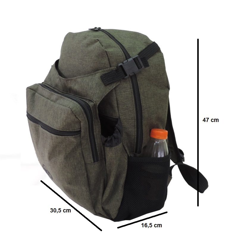 Mochila de costas, muito resistente, própria para escola, viagens, trabalho, academia, motociclista e outros; ideal para portar ferramentas, roupas, material escolar, EPI, acessório para trabalho e para o dia a dia. Mochila confeccionada em nylon méxico, de ótima qualidade, que possui as seguintes características: Um compartimento principal, com fechamento em zíper nº 8 e dois cursores; Possui mais 4 compartimentos frontais, sendo: 1 – Um situado entre os bolsos e a frente da mochila, com fechamento em fecho aranha; 2 – Outro sobreposto à frente do compartimento principal, fechamento em zíper nº 6 e um cursor; 3 – Outro mais à frente com fechamento em zíper nº 8 e um cursor; E outro sobreposto a esse anterior com fechamento em zíper nº 6 e um cursor; 4 – Um bolso lateral em tela spacer próprio para garrafa de água, suco etc; Uma alça de mão com cadarço de 2,5 cm de largura e 22 cm de comprimento; Duas alças de ombro almofadadas fixas e reguláveis; Costa almofadada com espuma pack entre o nylon resinado e a peça exterior, que torna essa peça mais rígida e almofadada; Interiormente é protegida e reforçada com forro em nylon resinado e viés de TNT arrematando e dando bom acabamento nas extremidades. Cores sortidas! Compartimentos (altura x largura x profundidade): Principal: 47 x 30,5 x 16,5 cm (aproximadamente); Lateral: 19 x 16 cm; Frontais: 1 – 35 x 30 x 11 cm; 2 – 31 x 27 x 0 cm; 3 – 33 x 27,5 x 5 cm; 4 – 27 x 27,5 0 cm.