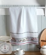 Pano de copa felpudo encorpado e absorvente, com 7 motivos variados nas barras, tornando possível bordar um motivo para cada dia da semana. A barra tem 40 pontos livres na altura da mesma. Composição Têxtil: ALGODÃO 85% NO MÍNIMO Medida: 45cm X 70cm Cor: branco – estampas sortidas