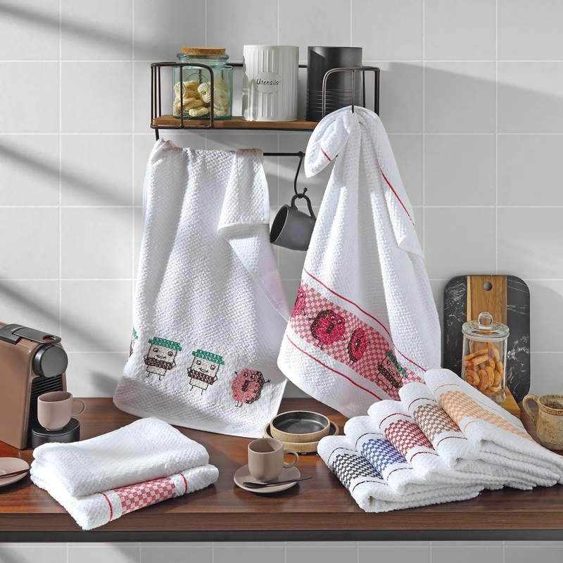 Pano de Prato felpudo encorpado e absorvente, com barra xadrez em 7 cores diferentes, tornando possível bordar um motivo para cada dia da semana. A barra tem 13 pontos livres na altura da mesma. Ideal para bordar ponto cruz duplo, com 366 g/m. Tamanho: 45 cm x 70 cm.