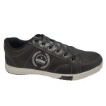 SAPATÊNIS COM SOLADO BICOLOR SINTÉTICO COSTURADO E FECHAMENTO EM CADARÇO. INTERIOR ACOLCHOADO PARA MELHOR CONFORTO. NUMERAÇÃO: 38 ao 43. CORES: Café e Preto.