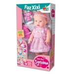 É só dar a mamadeira com água e o bebê faz xixi! • Acompanha mamadeira e fralda. Idade Recomendada: Acima de 3 anos.