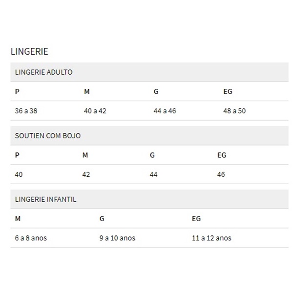 A LINHA SELENE LINGERIE FOI DESENVOLVIDA COM O CONCEITO SEM COSTURA,PARA PROPORCIONAR O MÁXIMO DE CONFORTO, NÃO APERTA E NÃO MARCA.IDEAL PARA USAR NO DIA A DIA. COMPOSIÇÃO: 84% POLIAMIDA, 16% ELASTANO. TAMANHOS: P, M, G, EG. CORES: 550-PRETO, 792-CHOCOLATE.